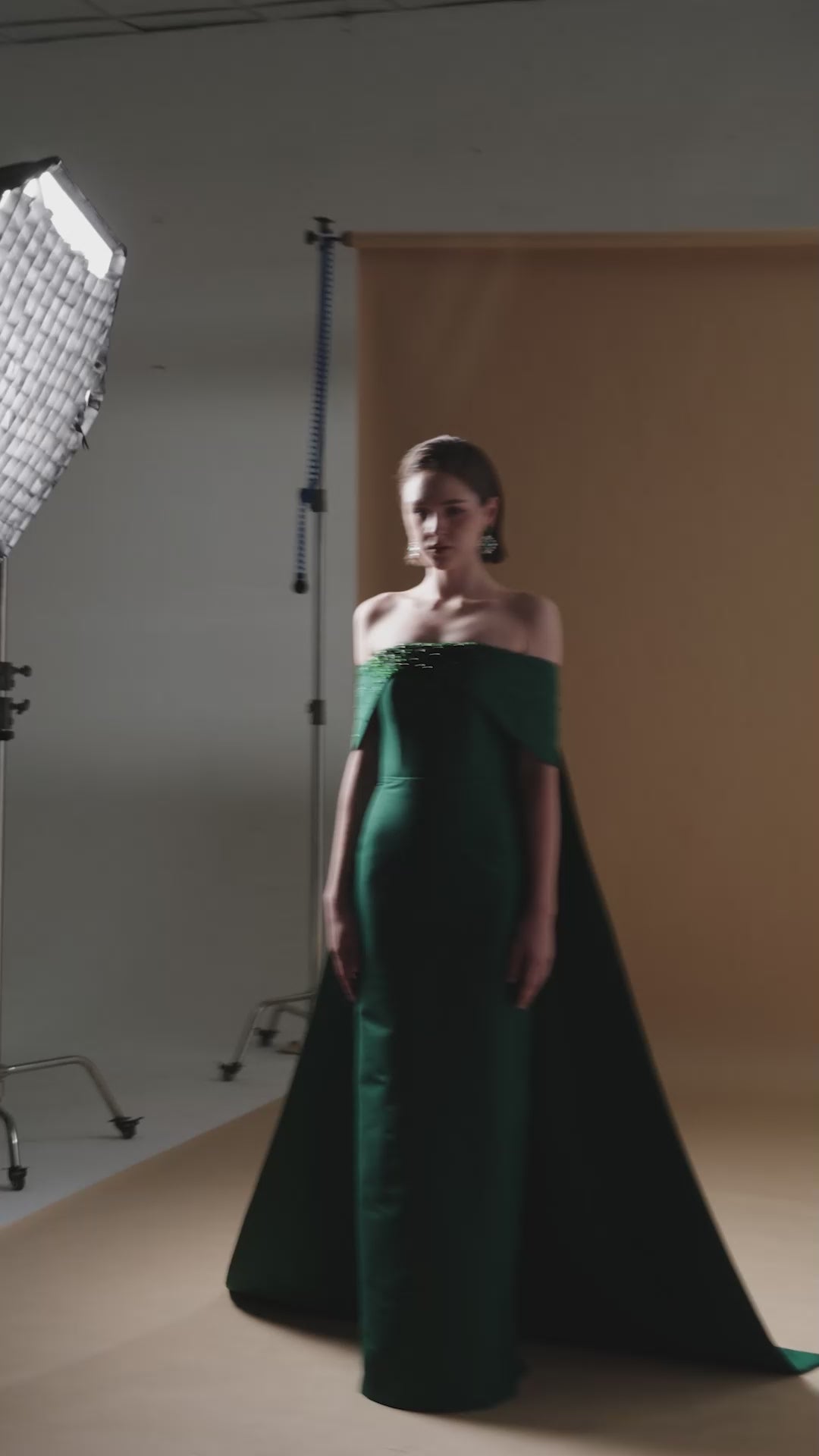 A captivating dark green strapless gown crafted from silk-lined taffeta, blending timeless sophistication with modern allure. The column silhouette gracefully elongates the figure, while draped off-shoulder sleeves and crystal-adorned cups exude refined opulence. The extended back train adds a majestic touch, perfect for grand entrances and unforgettable moments. MATERIAL Taffeta (Silk lined) NOTE - Perfect for the following occasions: Evening Galas, Private Parties - Price does not include accessories - Dry clean only and store separately - Made in Vietnam |