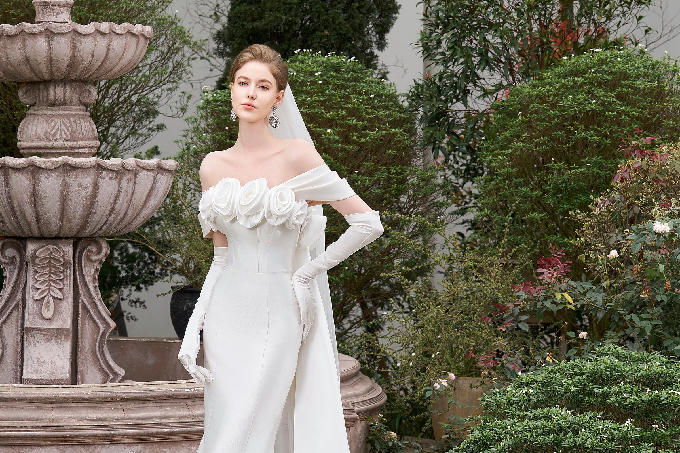 Bustier Mermaid Gown With Off-Shoulder Sleeves