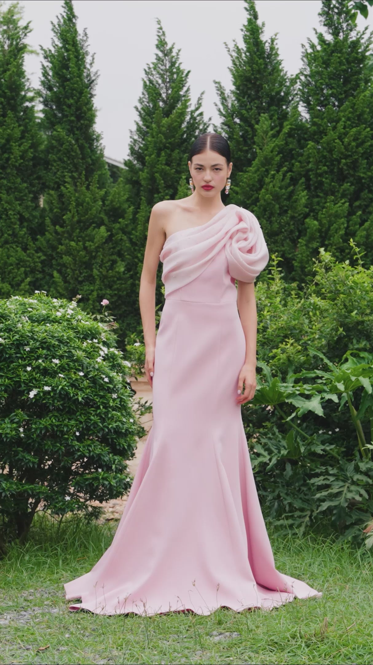 The Asymmetrical Mermaid Crepe Gown with Structured Petal Detailing exudes graceful drama and refined artistry. Cut in a sculpting mermaid silhouette, the gown features an off-centered, asymmetrical neckline that draws the eye with quiet allure. Along the bodice and skirt, structured petal embellishments bloom enchantingly, adding depth and texture to the sleek crepe base, a true ode to modern femininity. MATERIAL Crepe and Silk NOTE - Perfect for the following occasions: Wedding Reception, Private Parties - Price does not include accessories - Dry clean only and store separately - Made in Vietnam |