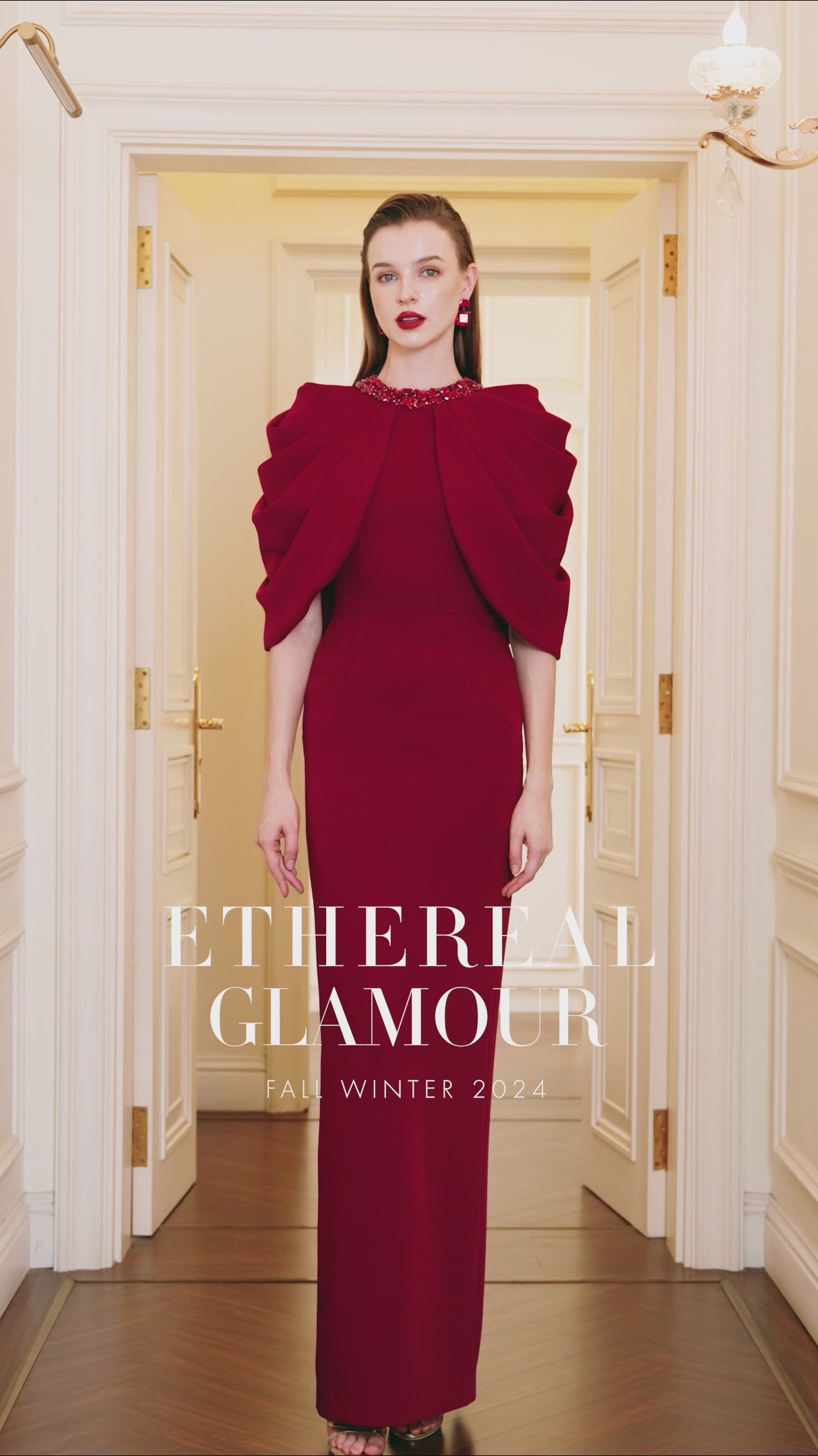 The basic column silhouette is enhanced by a gracefully draped cape with delicate pleats, exuding a powerful sense of confidence for the wearer. The sleeves are symmetrically designed with exquisite details, evoking the grandeur of British royal architecture. A row of red gemstones beautifully frames the neckline, adding a refined touch of regal elegance. MATERIAL Crepe NOTE - Perfect for the following occasions: Wedding Ceremony, Formal Events - Price does not include accessories - Dry clean only and store separately - Made in Vietnam |