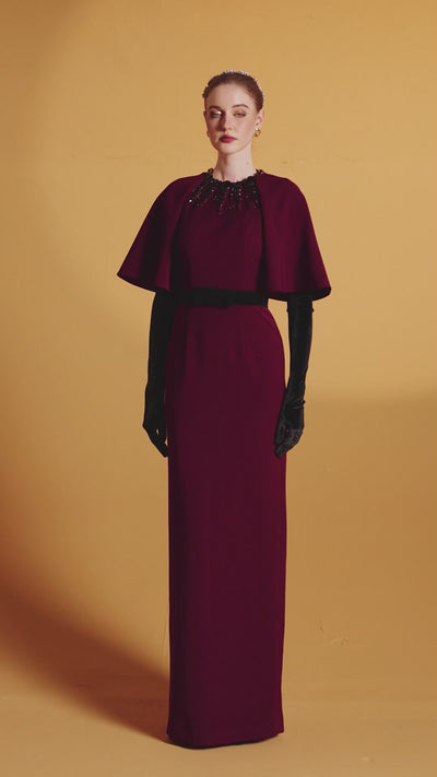 This Dark Red Floor-Length Round Neck Column Gown combines bold drama and refined elegance. The exaggerated Raglan sleeves add a striking flair, while crystals gently cascade from the neckline, creating a captivating sparkle. Crafted from luxurious Crepe, the gown drapes beautifully, offering both sophistication and modern charm. Perfect for those who seek a truly unforgettable presence, this design exudes grace and bold sophistication. MATERIAL Crepe (Silk lined) NOTE - Perfect for the following occasions: Formal Events, Private Parties - Price does not include accessories - Dry clean only and store separately - Made in Vietnam |
