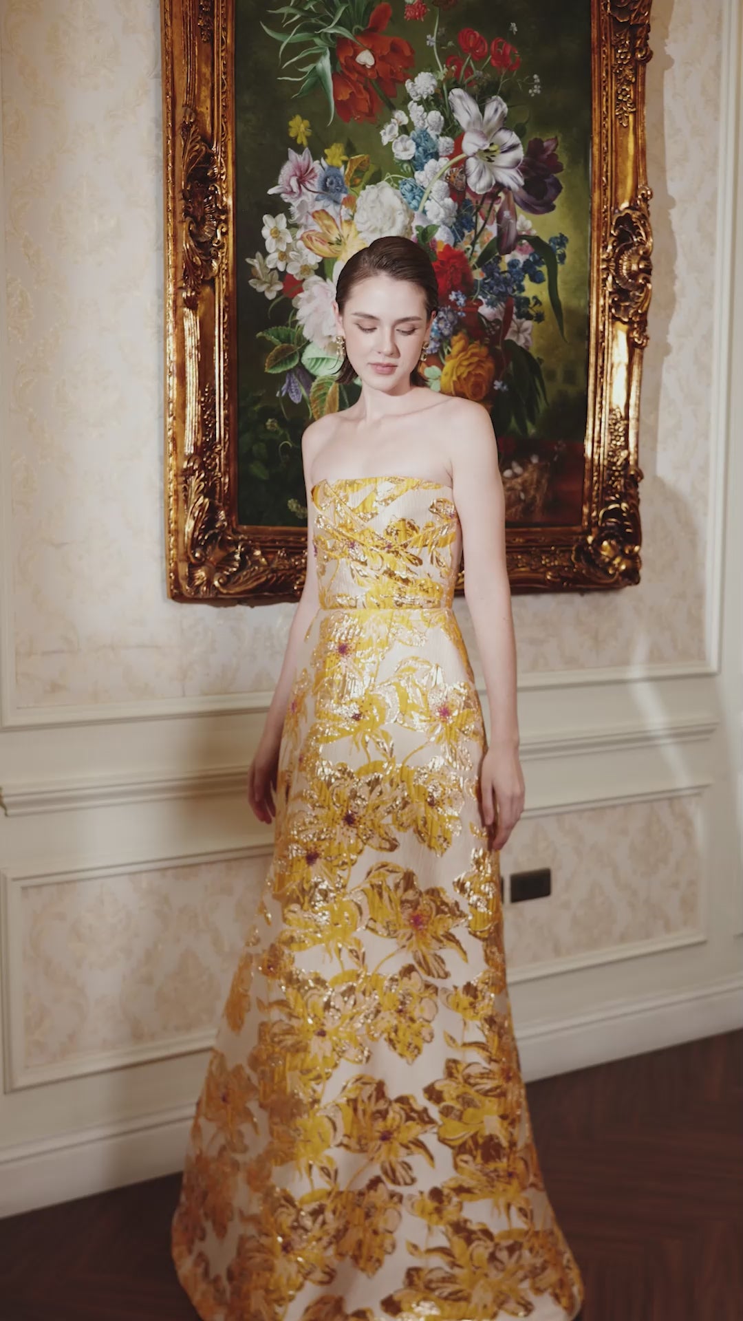 The Strapless A-line Gown in Jacquard exudes modern couture elegance. Its strapless neckline gracefully frames the shoulders, while crystal-adorned floral patterns catch light with subtle brilliance. The A-line silhouette flows effortlessly, creating a poised and sophisticated presence for refined evening occasions MATERIAL Jacquard (Silk lined) NOTE - Perfect for the following occasions: Evening Galas, Private Parties - Price does not include accessories - Dry clean only and store separately - Made in Vietnam |